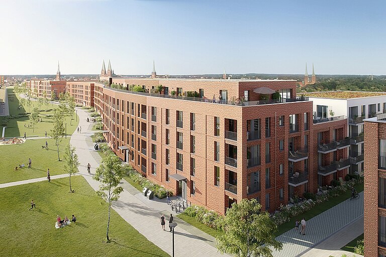 Das Quartier verbindet modernes Wohnen mit hoher Lebensqualität in urbanem Umfeld. Von den 233 fertiggestellten Wohneinheiten sind 93 öffentlich geförderte Wohnungen, 15 frei finanzierte Stadthäuser sowie 125 weitere Mietwohnungen. Besonders erfreulich: Im Zuge der Erstvermietung wurden bereits nahezu alle Wohneinheiten vermietet.